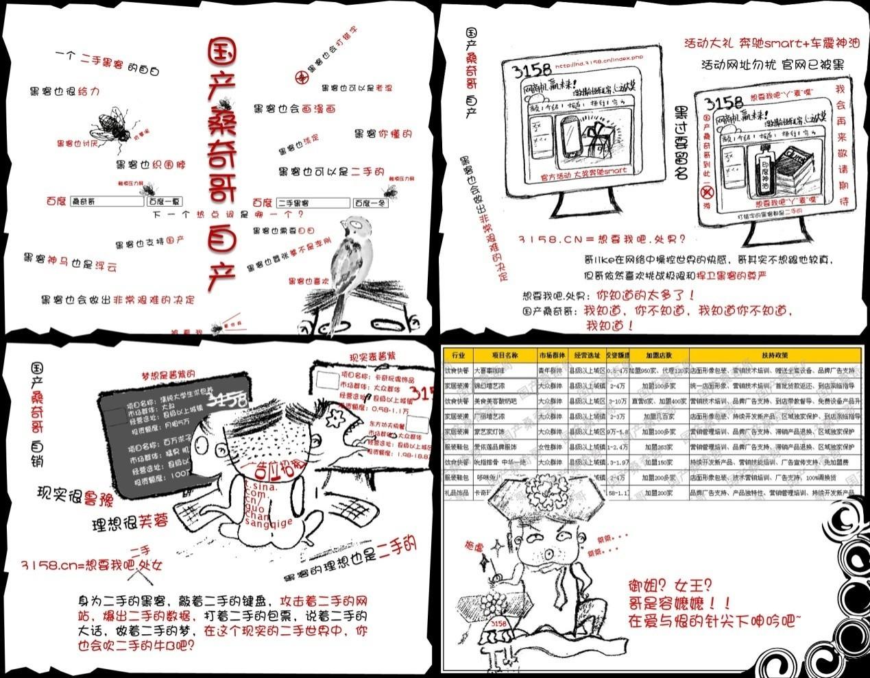 关于“二手黑客——国产桑奇哥”在其新浪微博上公布的一些活动数据。这些数据,正如其名所说,都是“二手”的,是过期的数据。我们的活动数据会及时更新,并绝对保密。“二手黑客——国产桑奇哥”在其新浪微博的连载漫画里,一方面以二手的杯具生活示弱,一方面又以强硬嚣张的的态度扬言攻击我方,以此引起一些不明真相的网民的共鸣与支持。从这点就可以看出,这名黑客具有很深的智谋和不可告人的目的,不排除觊觎活动大奖的可能。
